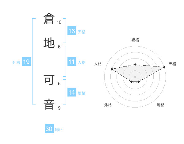倉地 可音さんの天格は16画の5点!