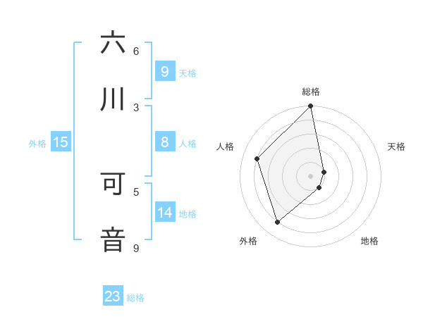六川 可音さんの総格は23画の5点!