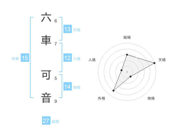 六車 可音さんの天格は13画の5点!