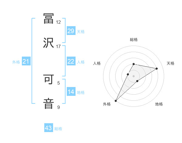 冨沢 可音さんを姓名の画数から五運を鑑定