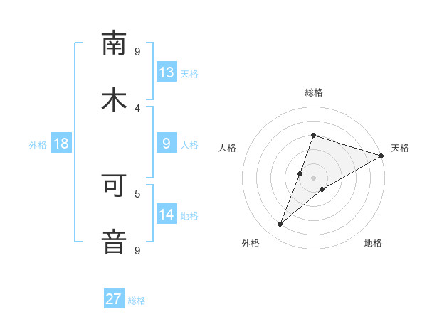 南木 可音さんの総格は27画の3点!