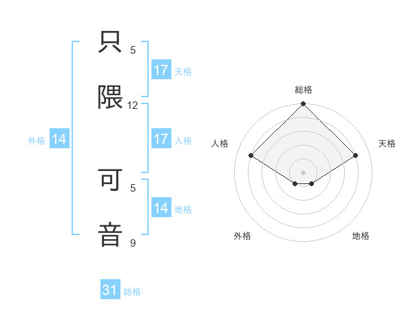 只隈 可音さんの天格は17画の4点!