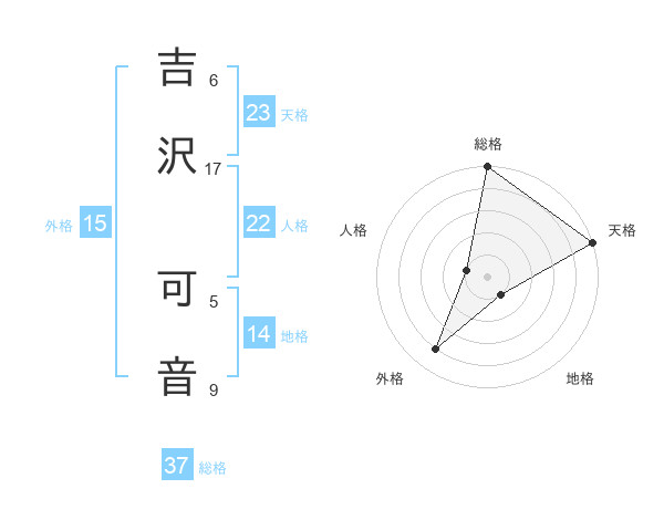 吉沢 可音さんの天格は23画の5点!