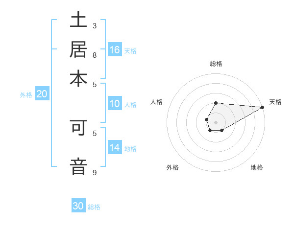 土居本 可音さんの天格は16画の5点!