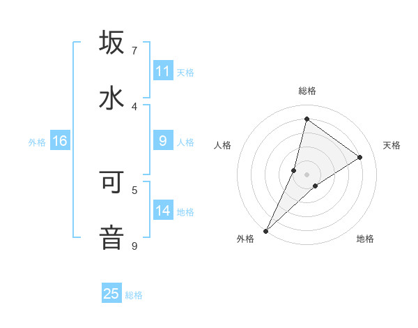 坂水 可音さんの外格は16画の5点!