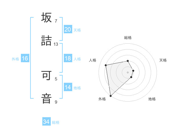 坂詰 可音さんの外格は16画の5点!
