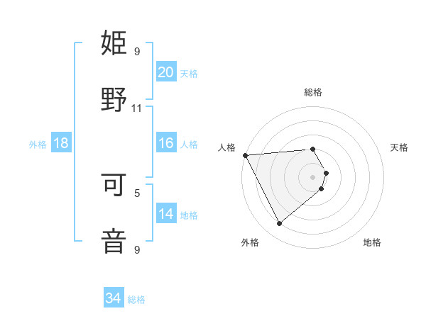 姫野 可音さんの天格は20画の1点!