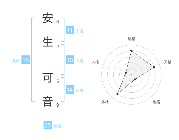 安生 可音さんの総格は25画の4点!