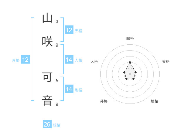山咲 可音さんの天格は12画の1点!