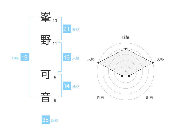 峯野 可音さんの天格は21画の5点!