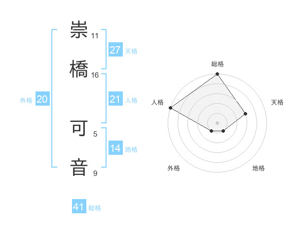 崇橋 可音さんを姓名の画数から五運を鑑定
