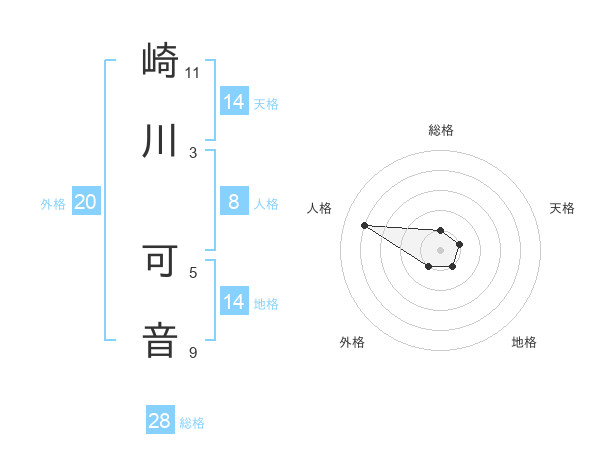 崎川 可音さんの総格は28画の1点!
