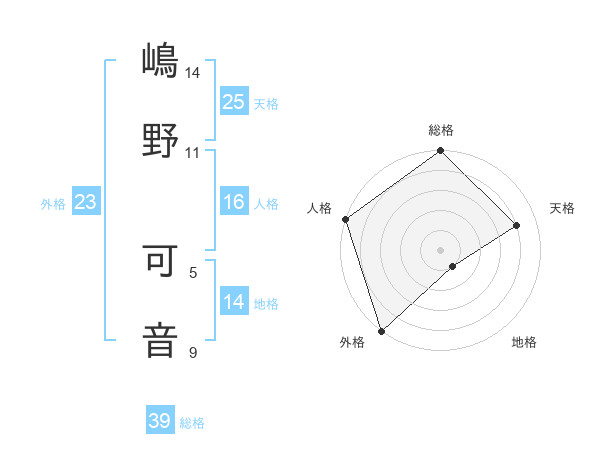嶋野 可音さんの外格は23画の5点!