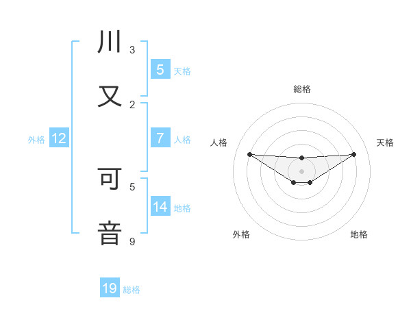 川又 可音さんを姓名の画数から五運を鑑定