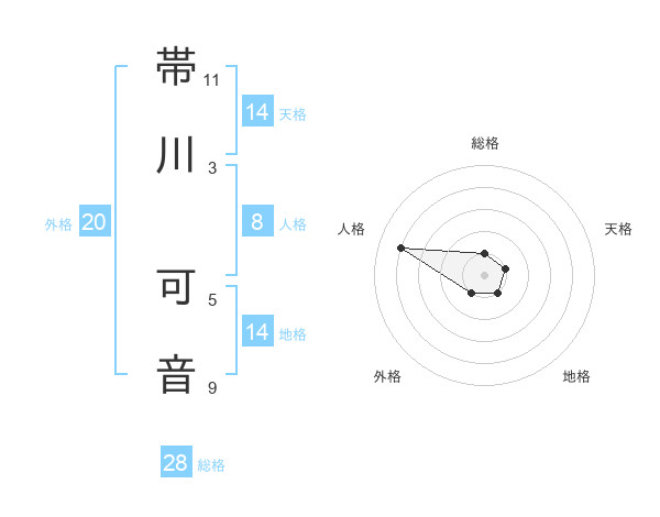 帯川 可音さんの総格は28画の1点!