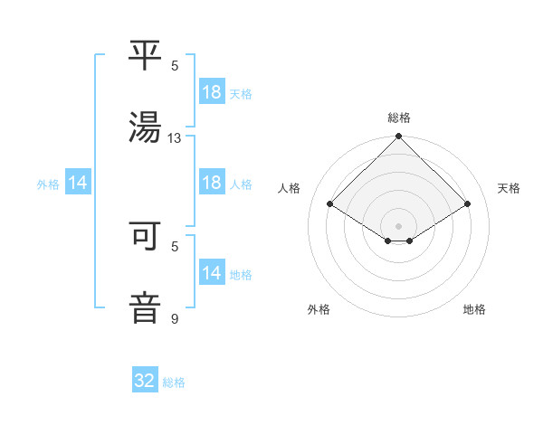 平湯 可音さんの天格は18画の4点!