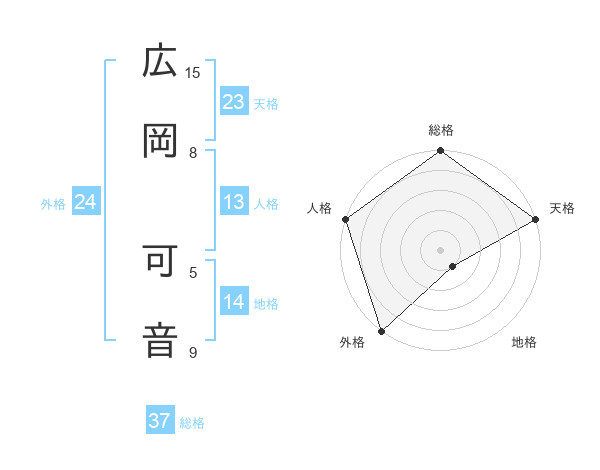 広岡 可音さんの総格は37画の5点!