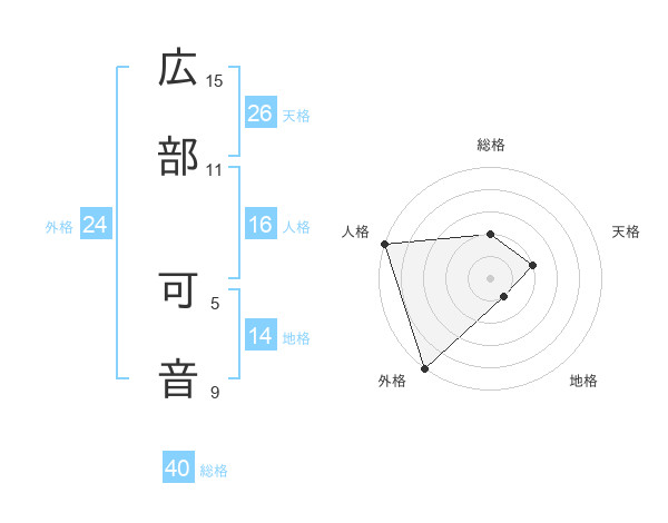 広部 可音さんの外格は24画の5点!