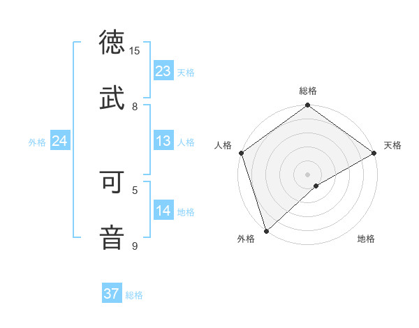 徳武 可音さんの天格は23画の5点!