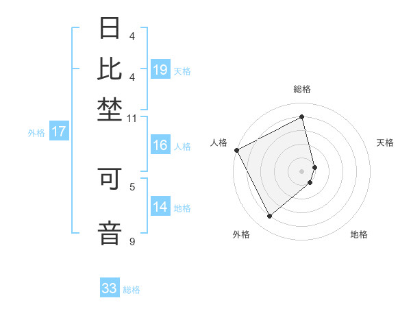 日比埜 可音さんの外格は17画の4点!