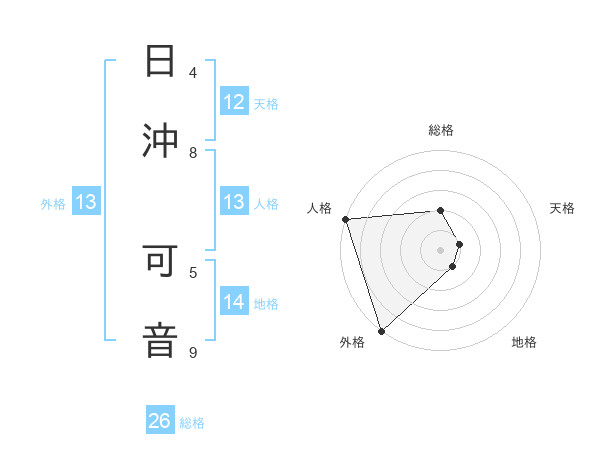 日沖 可音さんの外格は13画の5点!