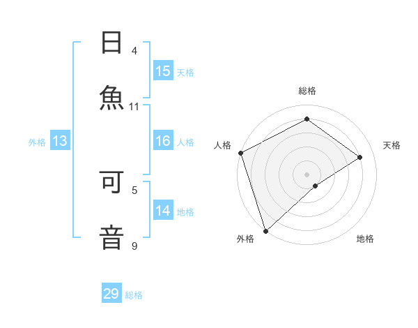日魚 可音さんの総格は29画の4点!