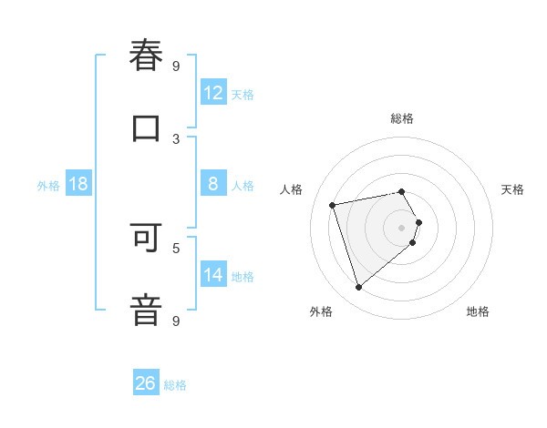 春口 可音さんの総格は26画の2点!