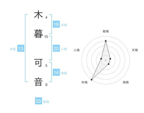 木暮 可音さんの外格は13画の5点!