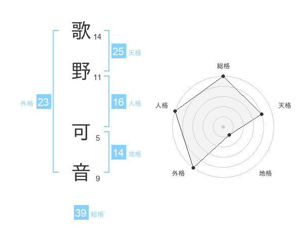 歌野 可音さんの天格は25画の4点!