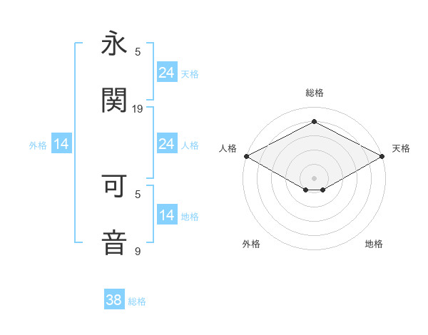 永関 可音さんの天格は24画の5点!