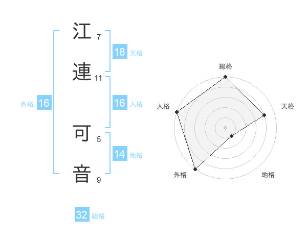 江連 可音さんの外格は16画の5点!
