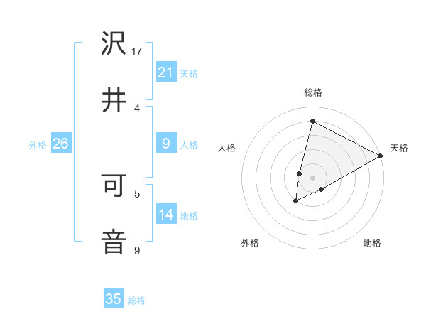 沢井 可音さんの総格は35画の4点!