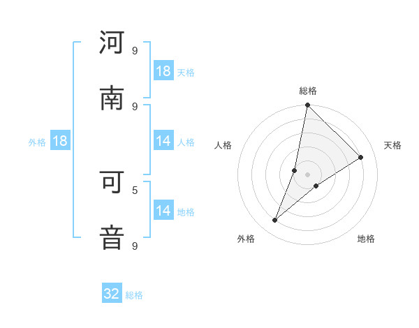 河南 可音さんの天格は18画の4点!