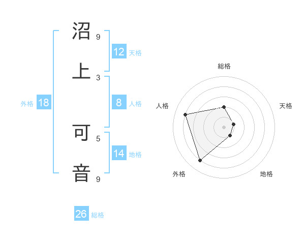 沼上 可音さんの天格は12画の1点!