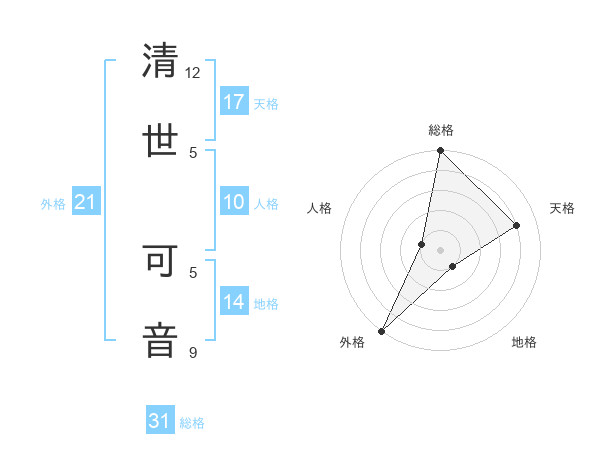 清世 可音さんの外格は21画の5点!