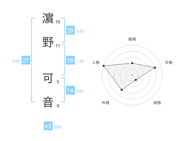 濵野 可音さんの総格は43画の2点!