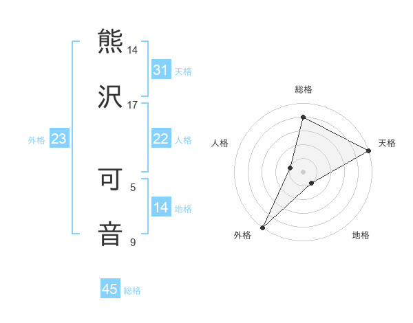 熊沢 可音さんの外格は23画の5点!