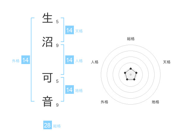 生沼 可音さんの天格は14画の1点!