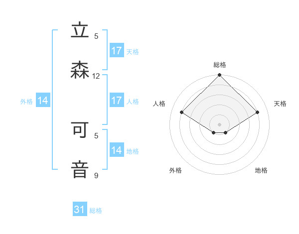 立森 可音さんの天格は17画の4点!