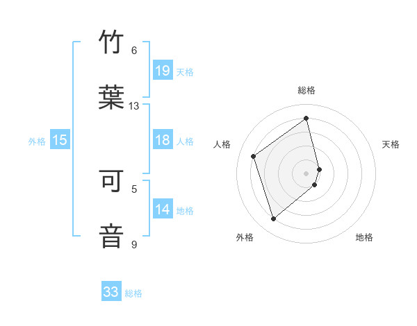 竹葉 可音さんの総格は33画の4点!