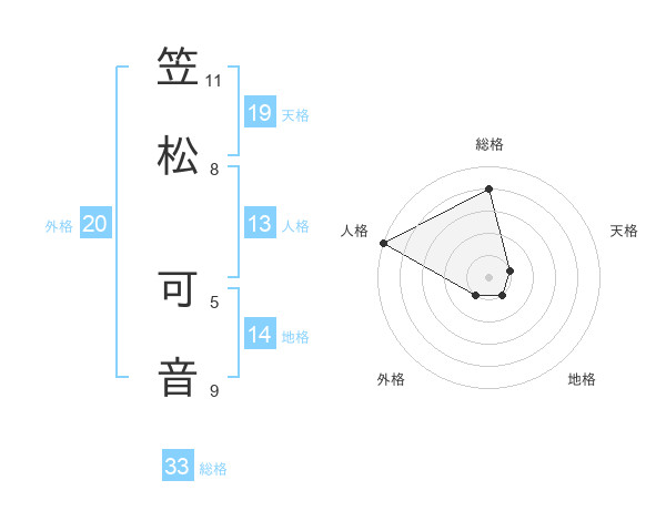 笠松 可音さんの総格は33画の4点!
