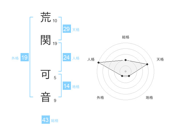 荒関 可音さんの地格は14画の1点!