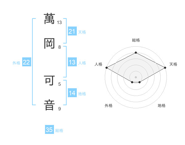 萬岡 可音さんを姓名の画数から五運を鑑定