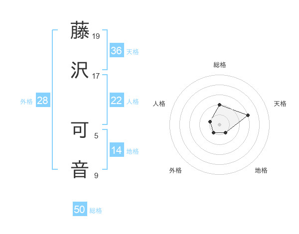 藤沢 可音さんの総格は50画の2点!