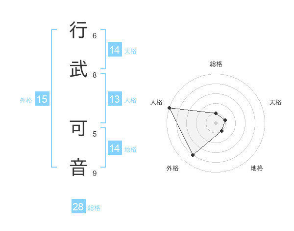 行武 可音さんの総格は28画の1点!