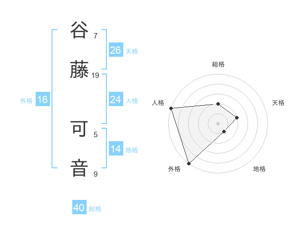谷藤 可音さんの外格は16画の5点!