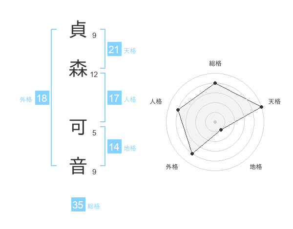 貞森 可音さんの天格は21画の5点!