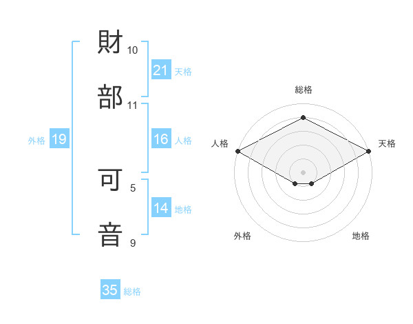 財部 可音さんの天格は21画の5点!