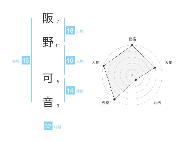 阪野 可音さんの総格は32画の5点!