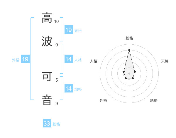 高波 可音さんを姓名の画数から五運を鑑定